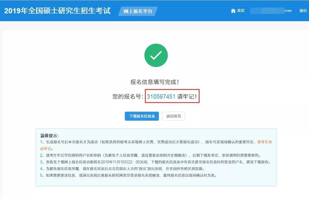 统考网报预报名成功后,会生成9位数字的报名号。如果选择了无需网上缴费省份的报考点的同学,只要生成了报名号就代表报名成功了。