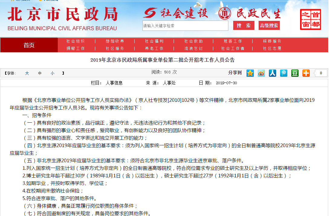 2019年8月7日,北京市民政局官网,发布了一则补充公告,标志着事业单位首次将非全和全日制放在同等地位,兑现了教育部文件中提到的:全日制和非全日制研究生实行相同的考试招生政策和培养标准,其学历学位证书具有同等法律地位和相同效力。非全日制的社会认可度将得到一次实质性的提升。